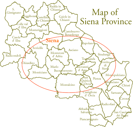 Siena Town Abbadia S. Salvatore Asciano Bagno Vignoni Buonconvento Casole D' elsa Castellina in Chianti C..nuovo Berardenga Castiglione d' Orcia Cetona Chianciano Terme Chiusdino Chiusi Colle di Val D' elsa Gaiole in Chianti Montalcino Montepulciano Monteriggioni Monteroni D' Arbia Monticiano Murlo Pienza Poggibonsi Radda in Chianti San Galgano San Gimignano Sant' Antimo San Quirico D' orcia Sinalunga Trequanda More places >>