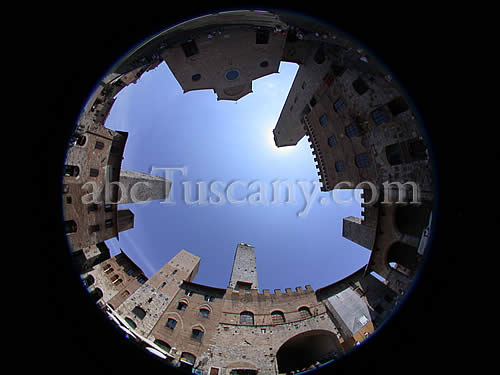 San Gimignano - Fish eye view of piazza del Duomo